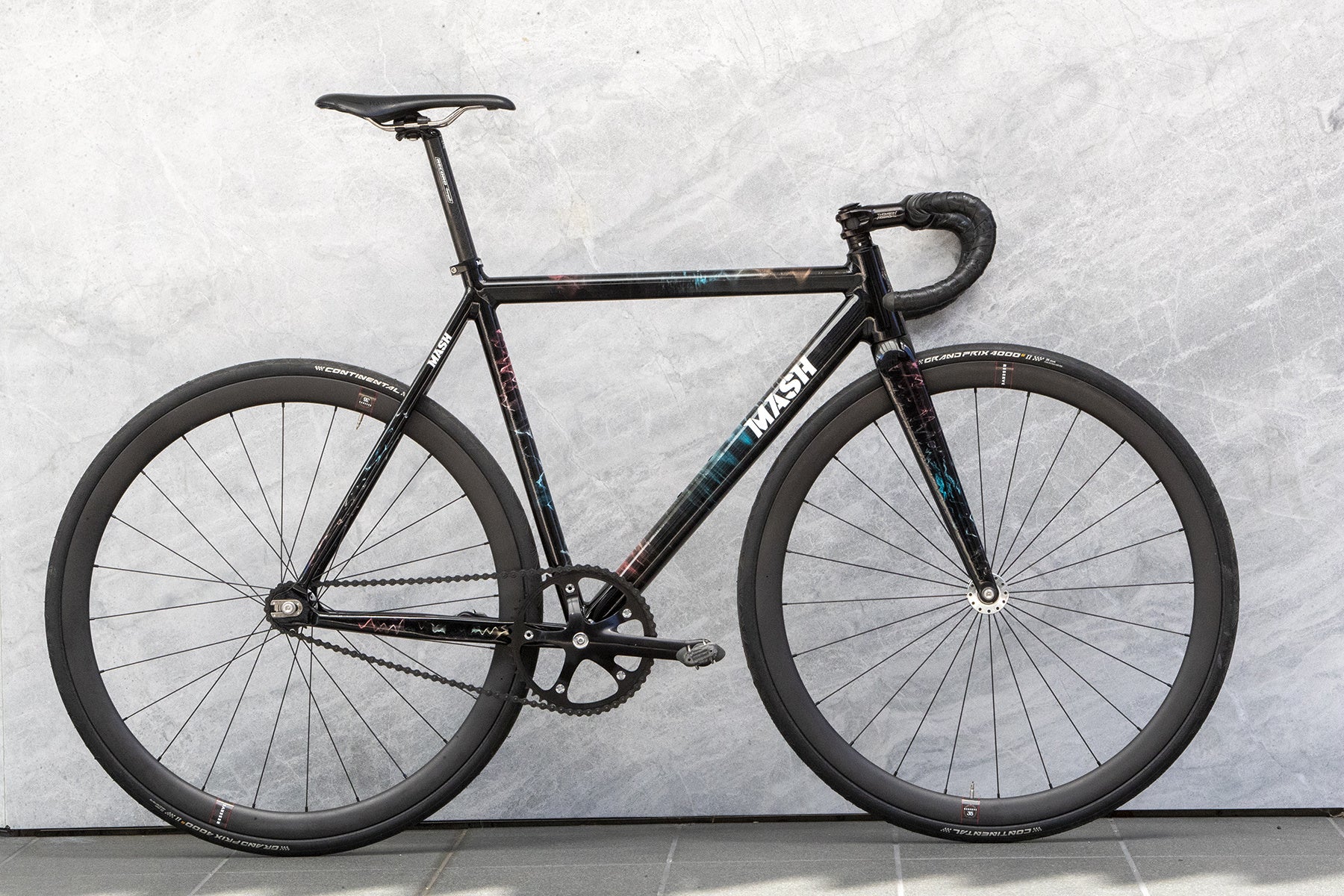 We use Columbus 7005 series Airplane tubing built to our custom specifications. Painted gloss black with incredible graphic work from Al Nelson.